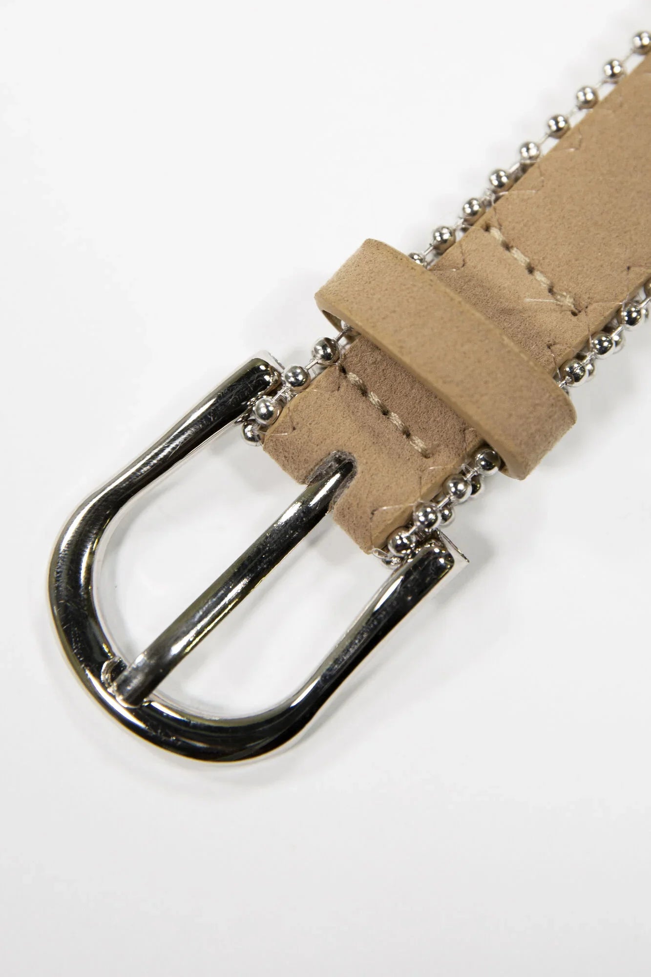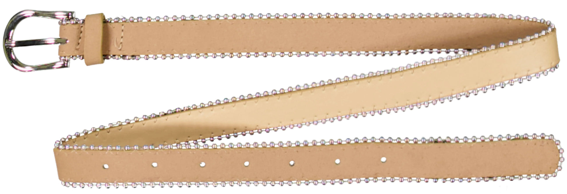 Dieser Gürtel ist das ideale Accessoire für verschiedene Outfits. Dieser beigefarbene Gürtel mit Metallschnalle hat einen Suede-Look. Dieser Gürtel hat 7 Löcher und silberne Perlen an der Seite. Dieser Gürtel macht Dein Outfit komplett.