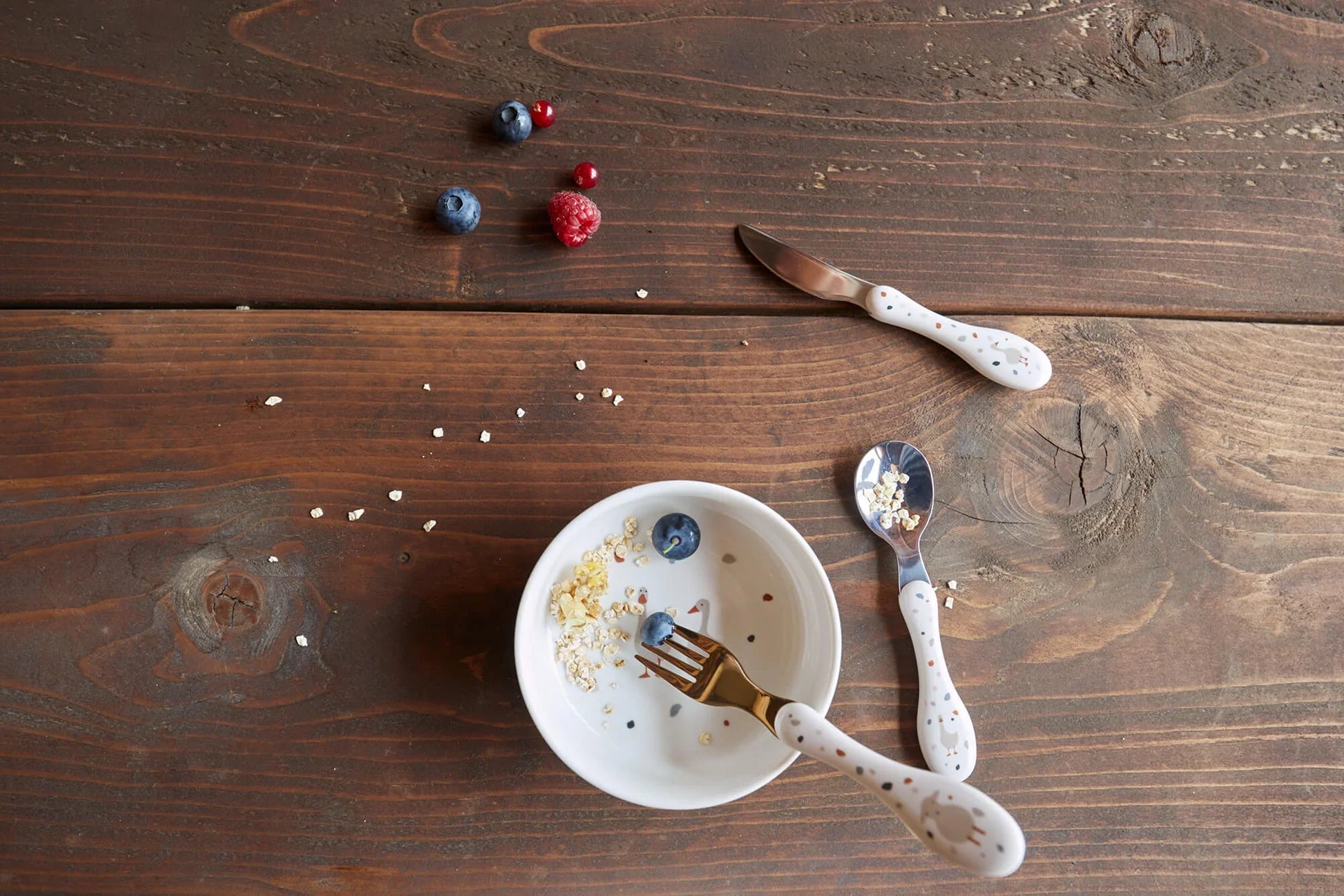 Dank seinen abgerundeten Kanten ist das Messer auch schon für die kleinsten Feinschmecker geeignet und bringt spielerisch das eigenständige Essen bei.