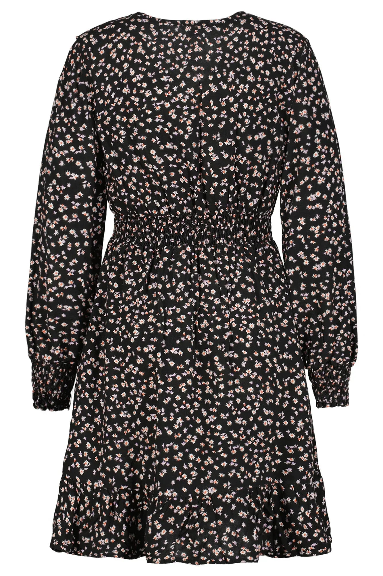 Kleid mit Allover-Print. Mit diesem Modell gestaltest du einen fröhlichen, verspielten Look. Dieses Kleid hat lange Ärmel, einen V-Ausschnitt und einen elastischen Taillenbund. Es ist in einer Regular-Fit-Passform ausgeführt. Dieses Modell ist aus 100 % Viskose gefertigt.