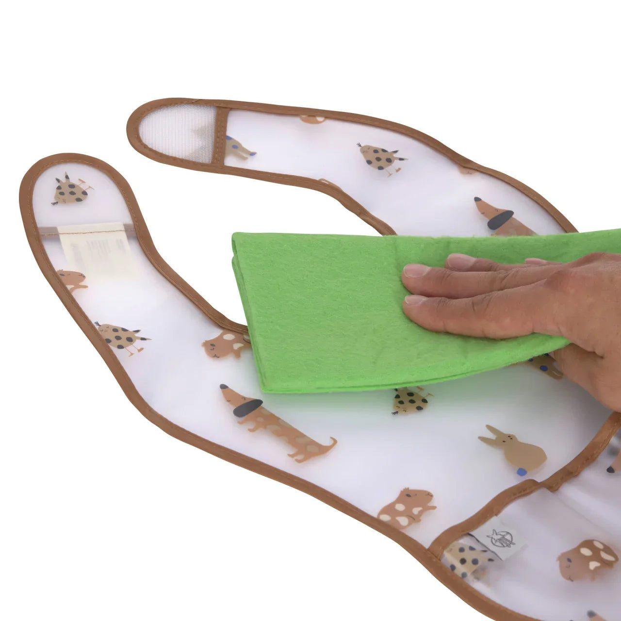 Geht einmal etwas daneben, ist die Kleidung geschützt dank der abwaschbaren Lätzchen mit zusätzlichem Auffangschutz.
