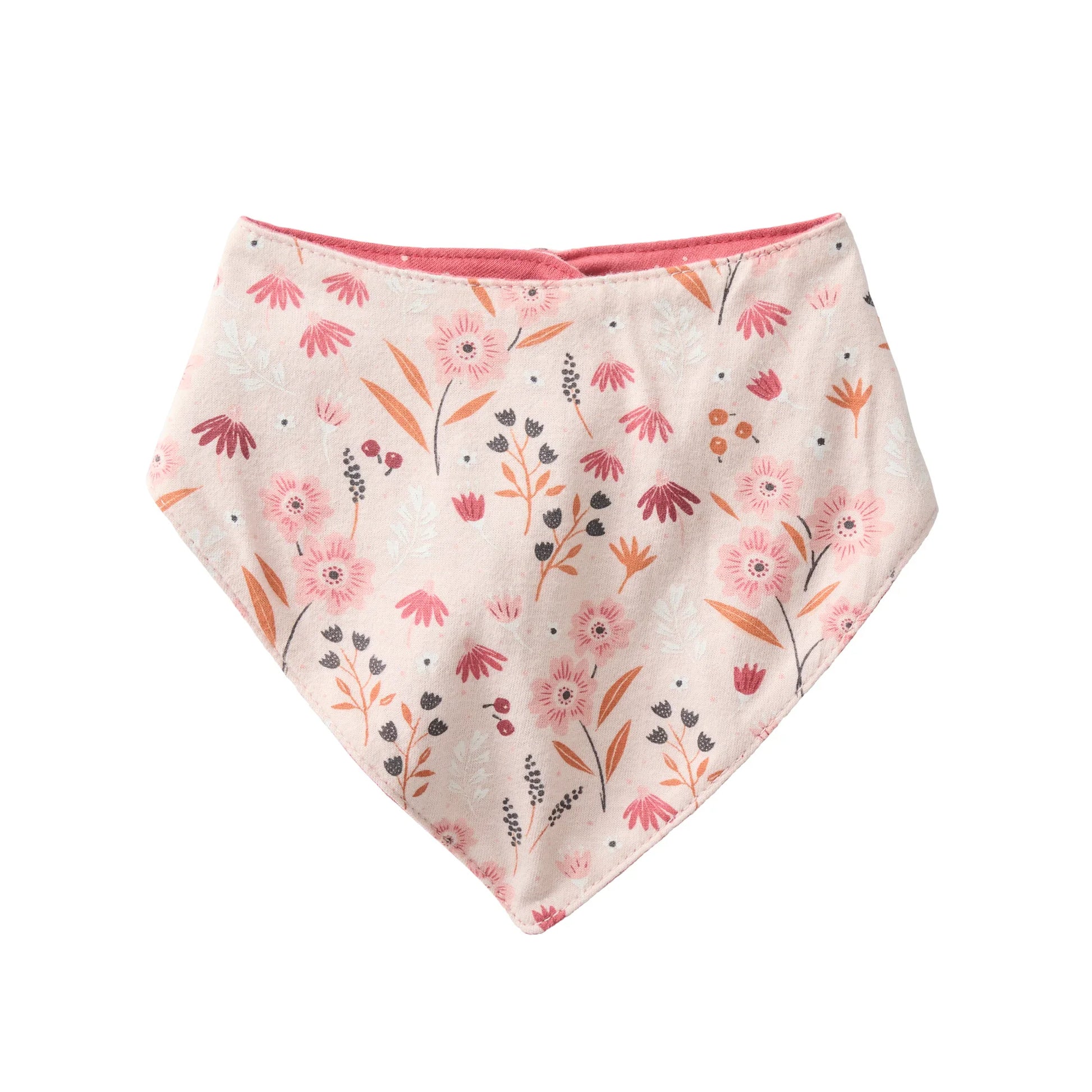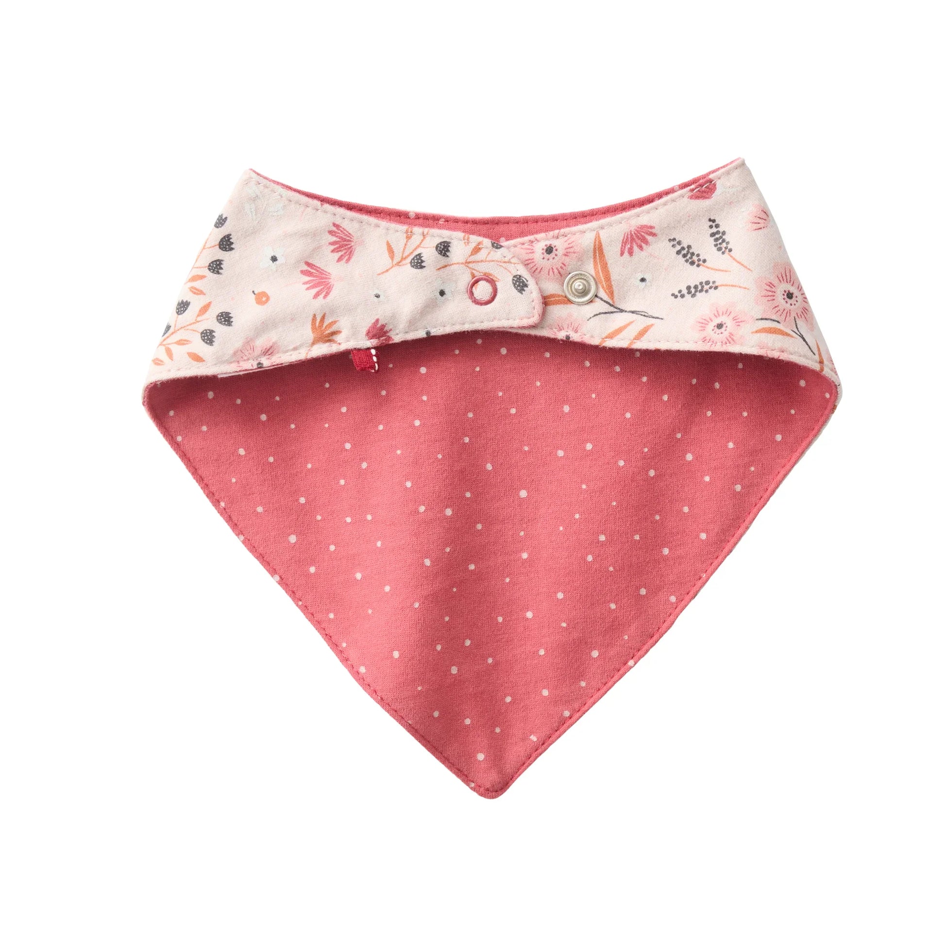 Dreieckstuch, wendbar, rot bedruckt "Tupfen" und rosa bedruckt "Winterblumen", Bio-Baumwolle