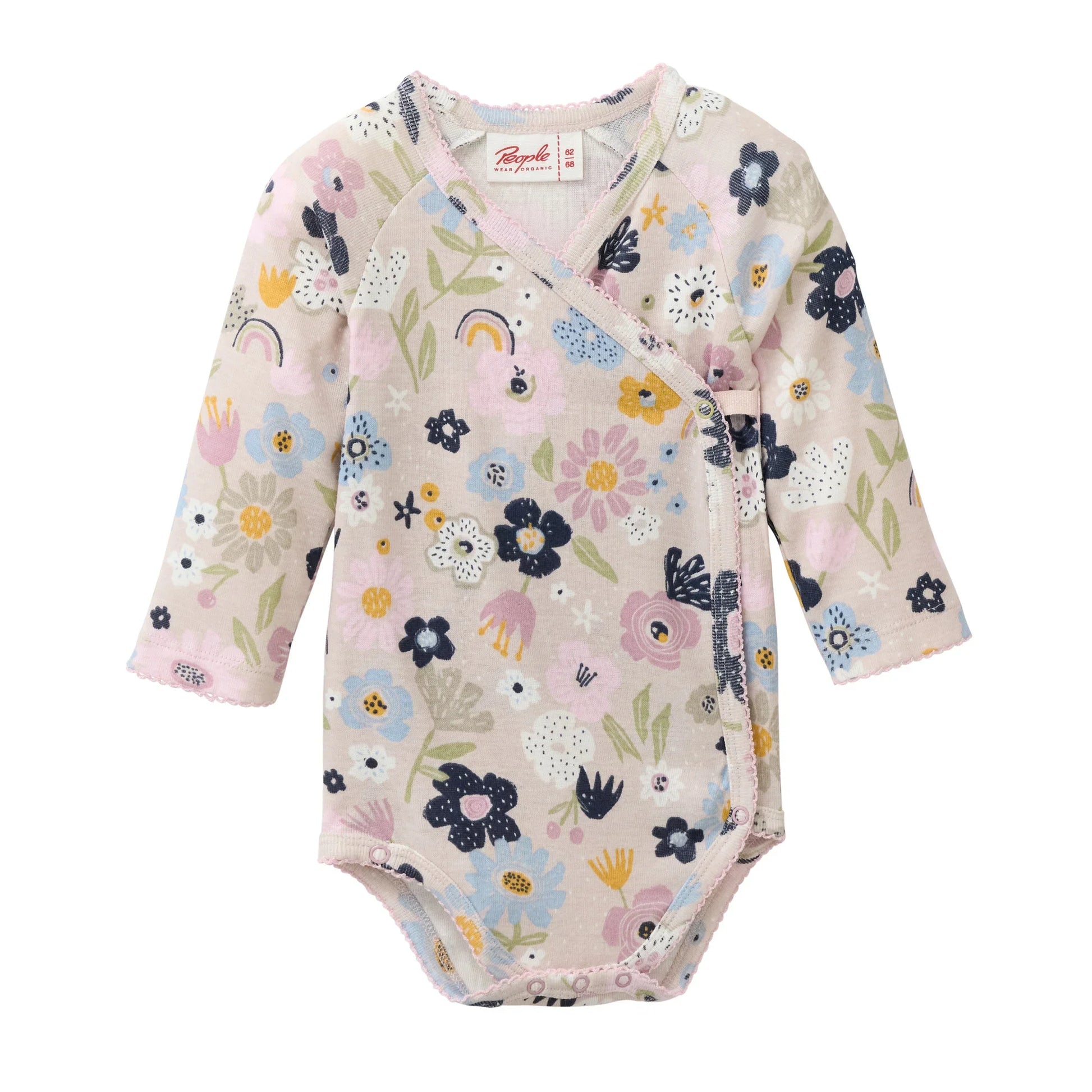 People Wear Organic Wickelbody Langarm mit Blütenprint GOTS