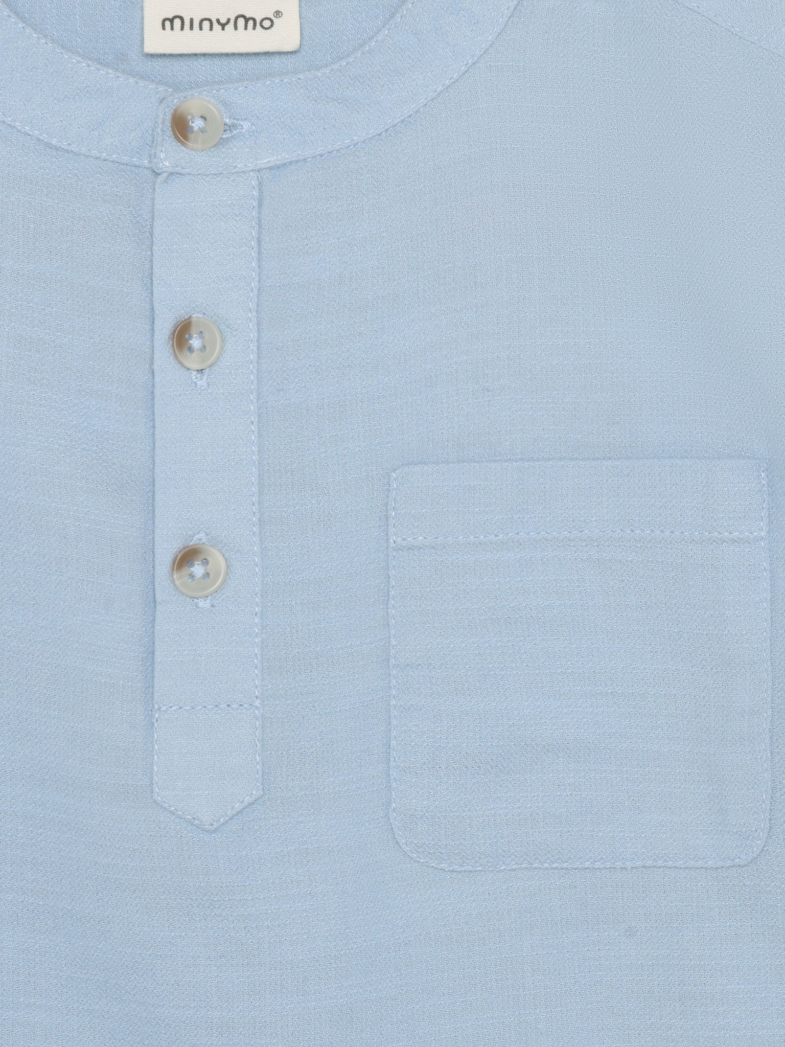 Langärmeliges Hemd aus 100% Baumwolle von Minymo in klassischer Unifarbe. Das Shirt besticht durch praktische Details wie eine Brusttasche und eine durchgehende Knopfleiste. Die Ärmel lassen sich flexibel hochkrempeln – ideal für aktive Kinder, die Bewegungsfreiheit brauchen. Zeitlos und vielseitig kombinierbar für den Alltag.