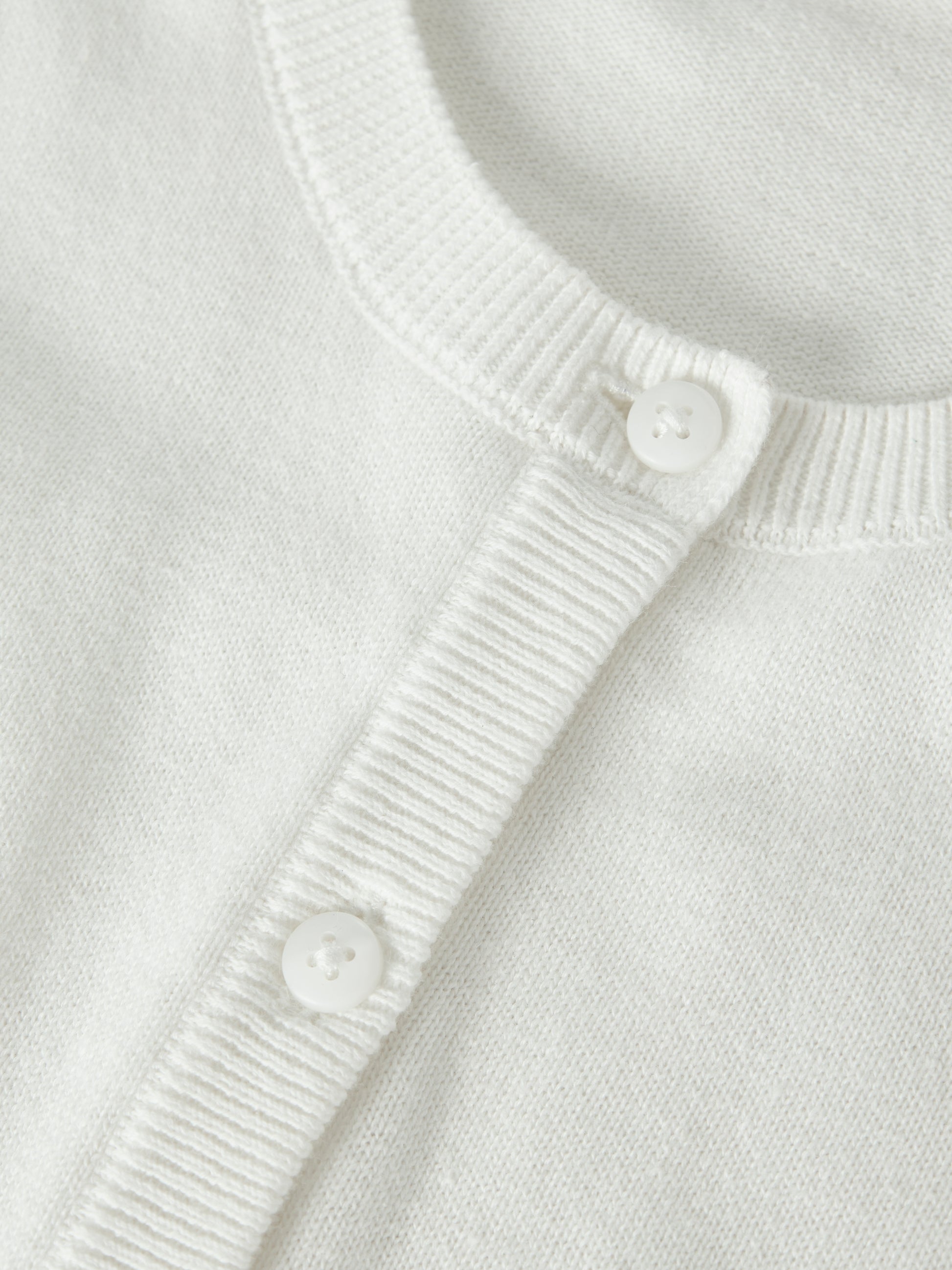 - Produktart: Cardigan - Verschluss: Knopfverschluss - Ausschnitt: Rundhalsausschnitt - Ärmel: Lange Ärmel - Ärmelbündchen: Gerippte Ärmelbündchen - Weitere Details: Gerippter Saum - Stoff: Flachstrick - Passform: Regular Fit
